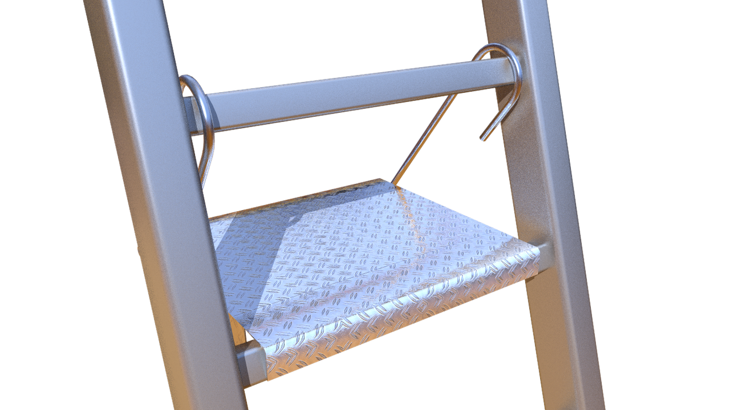 Soporta un peso de más de 180 Kg. Aunque las normativas de carga máxima de escaleras especifiquen 150 kg como peso máximo autorizado. Que es el peso máximo recomendado para la carga de la plataforma se suspende entre dos peldaños.