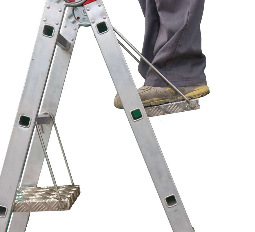 Evita lesiones en los pies o extremidades cuando se esta un tiempo prolongado sobre la escalera.